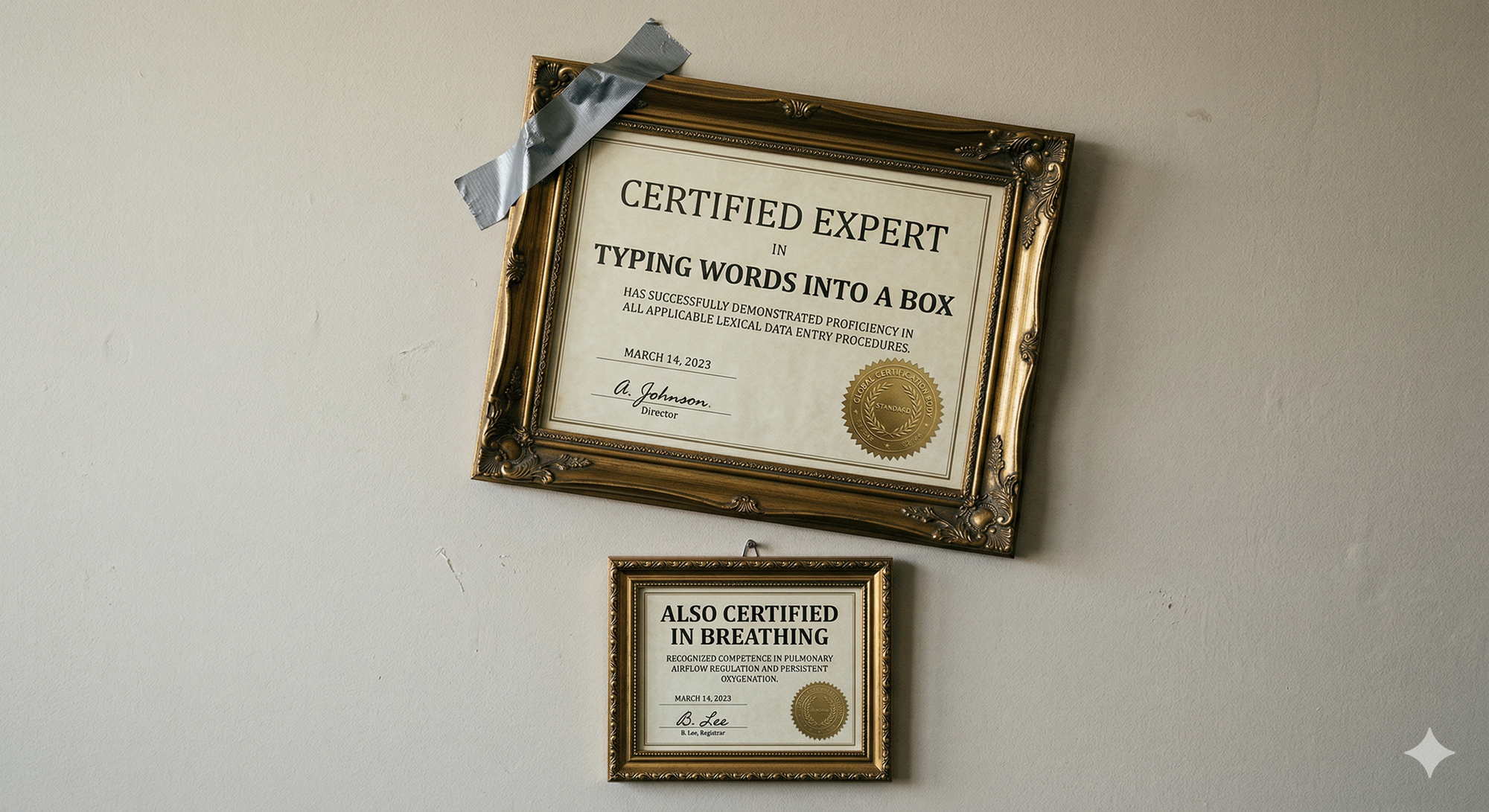 That energy is back, except now the certificate says "Generative AI Specialist" instead of "I can type with my fingers."