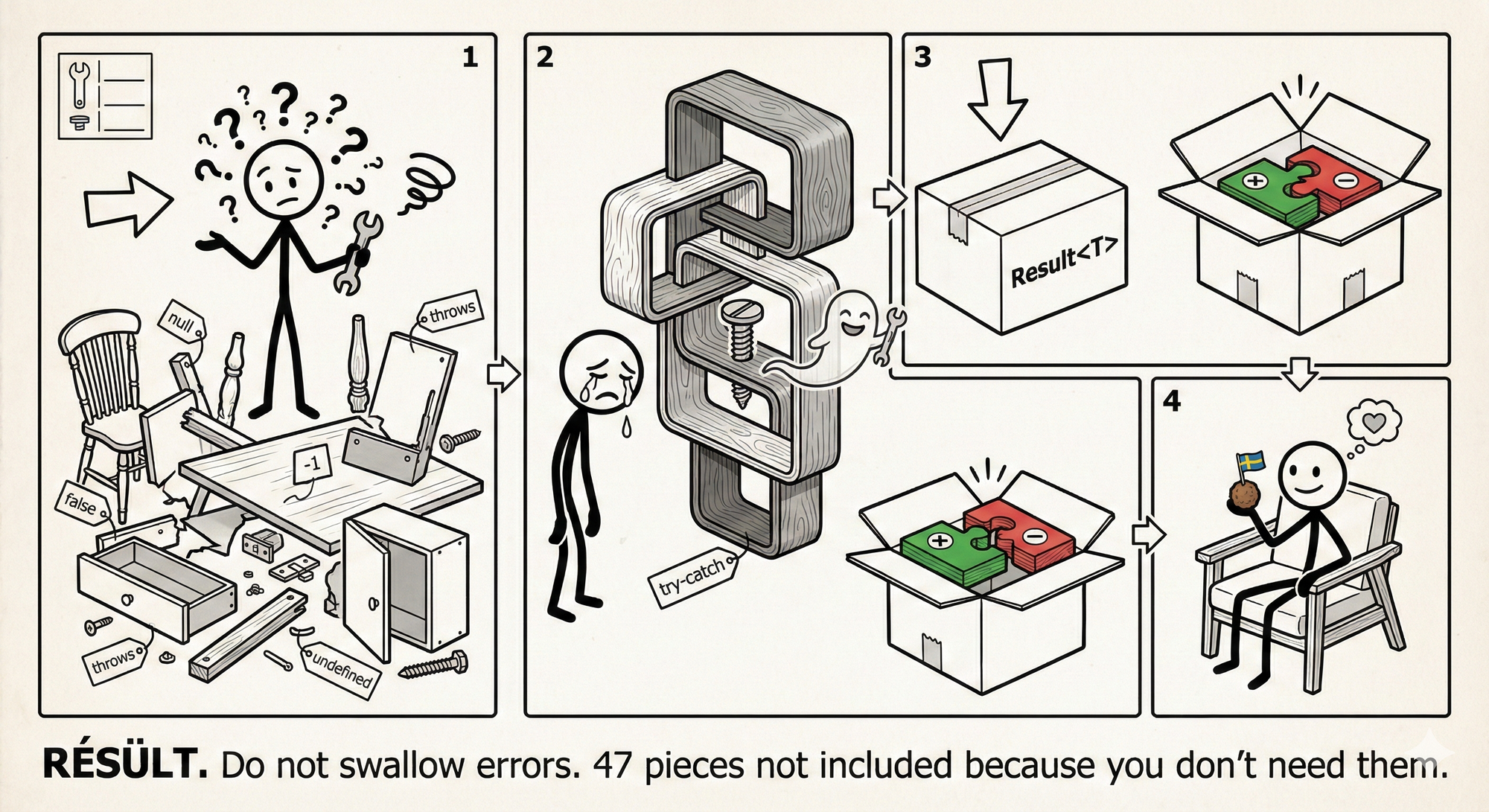 Result types are not an error handling strategy. They are a domain modeling strategy. Use them where failure has meaning. Let exceptions stay exceptions where failure is just the universe being rude.